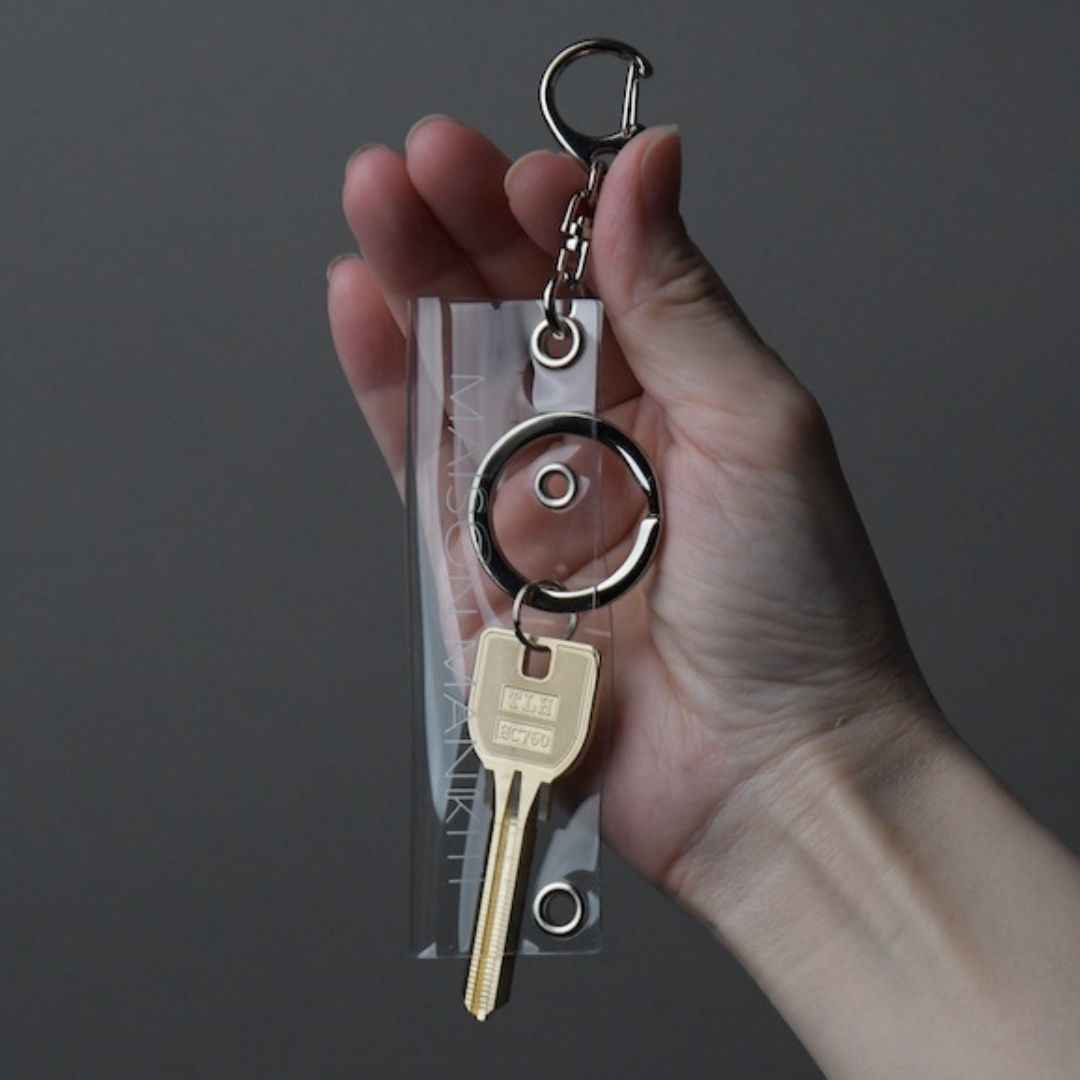クリアの折りタグが存在感のあるサイズでポップなチャームのキーホルダーです。鍵を1つ収納でき、バッグを傷つけにくい設計。1つだけでも持つ人を引き立て、ほかのチャームと合わせても調和しやすいシンプルなデザインが魅力です。エッジの効いた大人なスタイルにもカジュアルスタイルにも合わせやすく、性別問わず使えるアイテムとして、おしゃれな同僚の小物遣いをセンスアップしてくれるでしょう。