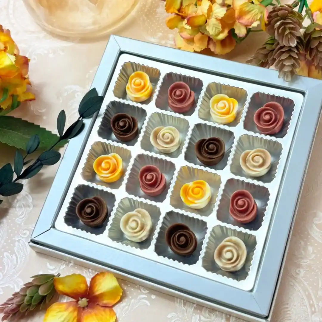 深みのある色彩が美しい、ダリアの花を思わせる季節限定の薔薇ショコラです。箱を開けた瞬間に感嘆の声が上がるほど華やかで、誕生日という特別な日のお祝いにぴったり。甘みと苦みのバランスが絶妙な味わいは、まるで果実のように芳醇な余韻を残します。花びらを味わうような、やわらかな口どけを楽しんでもらいましょう。