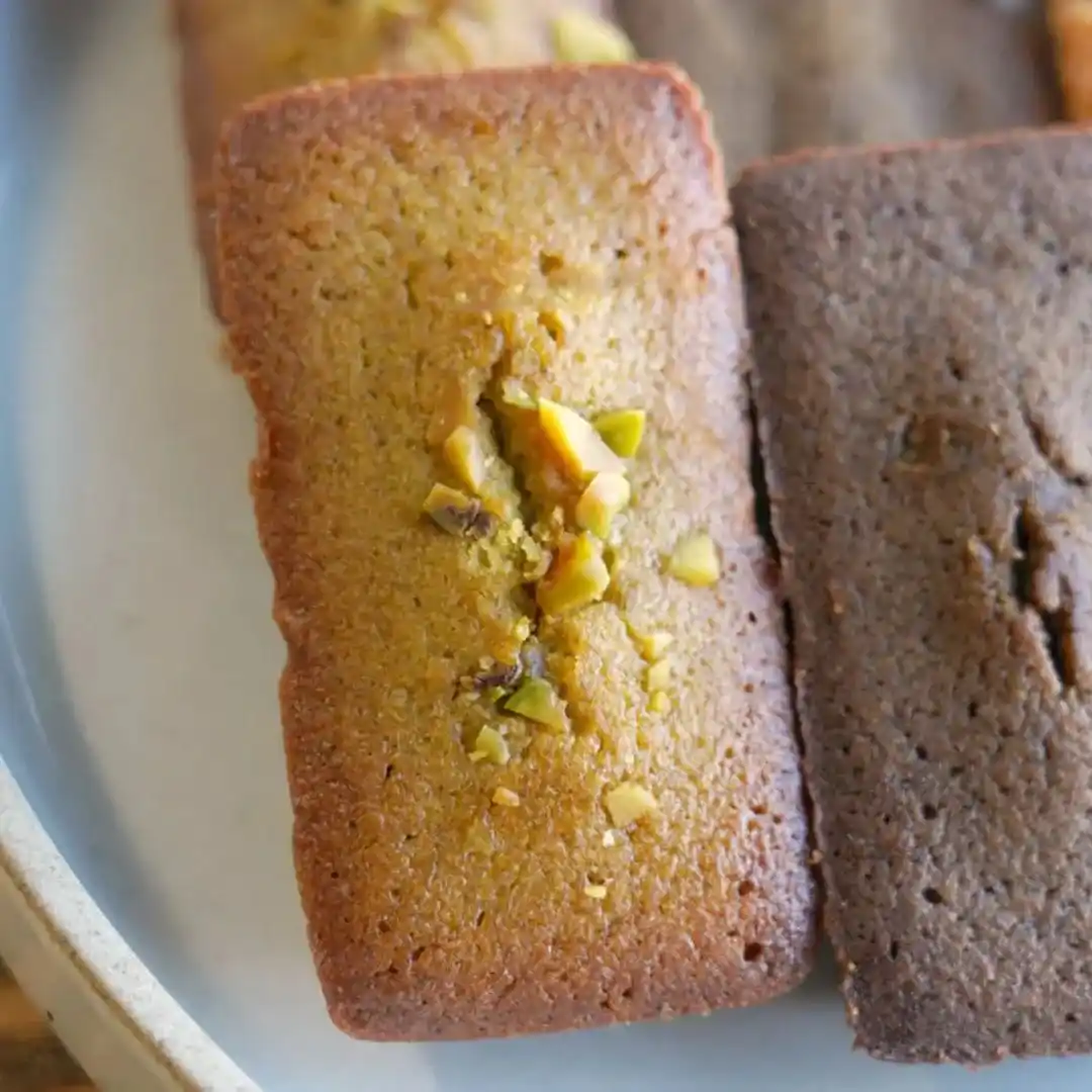 特別な卵とフランス産発酵バターが織りなす手作りフィナンシェに、ピスタチオを纏わせた逸品です。焦がしバターの深いコクと、こんがりとした外側、しっとりとした内側の食感が絶妙な王道のフィナンシェで、ピスタチオの風味が贅沢なティータイムを演出します。素材へのこだわりが光る、お子様も安心の焼き菓子です。
