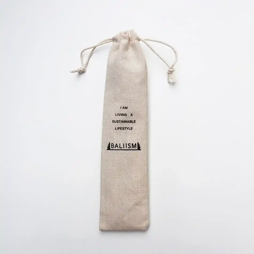 マイストローやマイ箸など、持ち運びカトラリーを清潔に携帯できる、サステナブルなコットン製ポーチです。丈夫で自然な手触りが心地よく、日常で発生する使い捨てカトラリーのゴミ削減に貢献できます。環境に配慮した行動をサポートする、持ち運びに便利なアイテムです。
