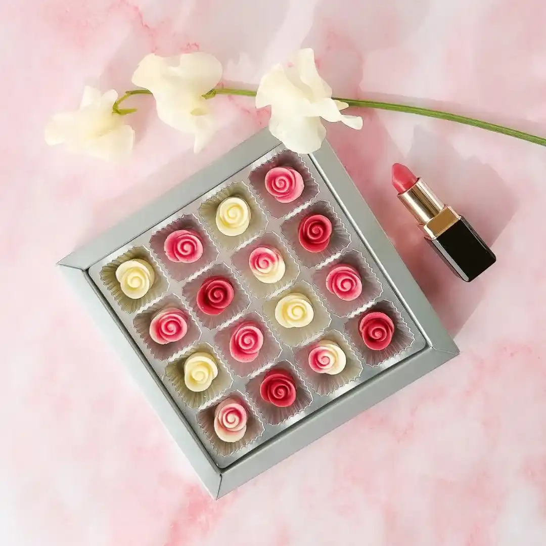 ダリアを思わせる深みのある色彩の、季節限定の薔薇ショコラです。箱を開けた瞬間に感嘆の声があがるほど華やかで、甘みと苦味のバランスが絶妙。果実のように芳醇な余韻が広がり、まるで花びらを味わうようなやわらかな口どけを楽しめます。