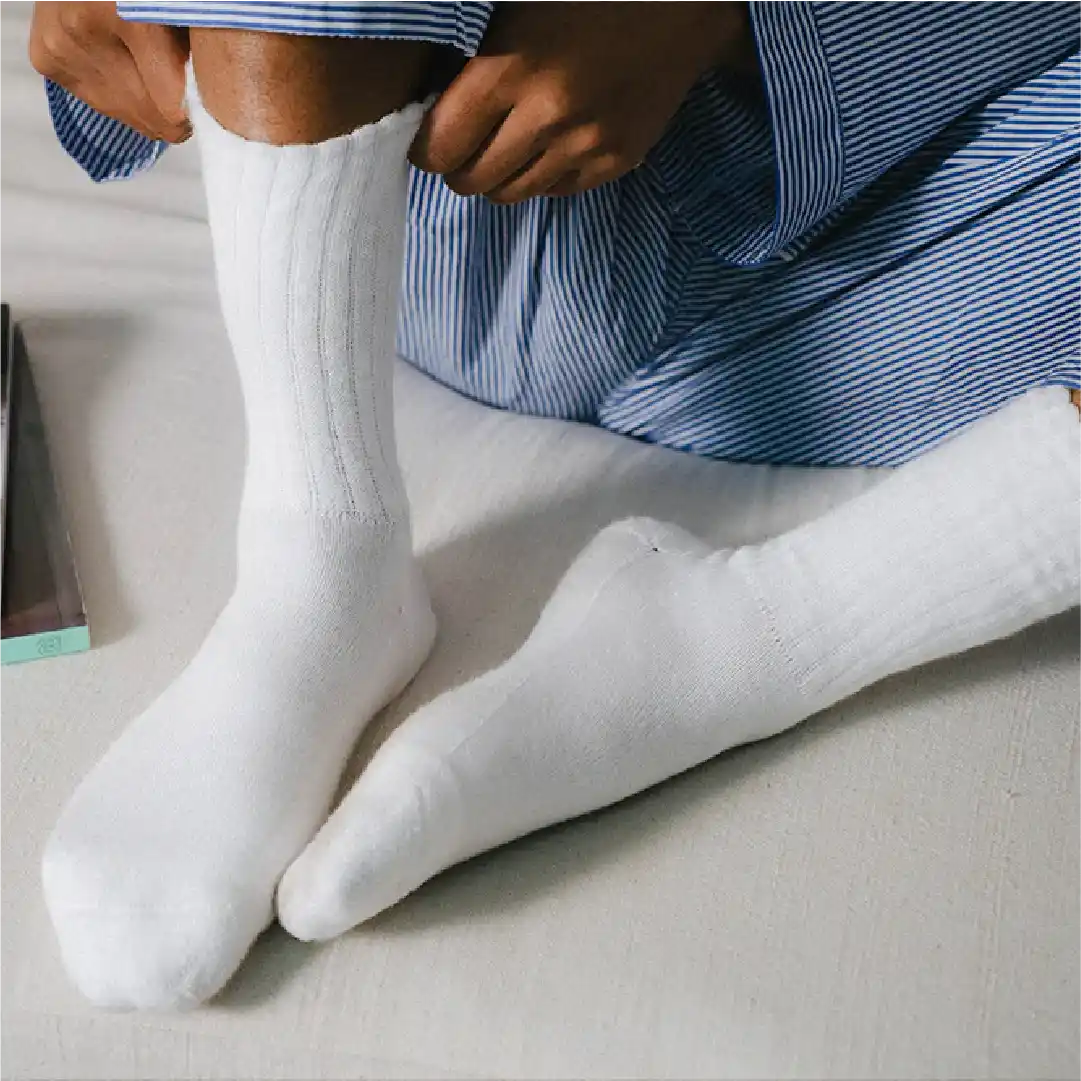 シルクの中でもハイクオリティーとされる国内染色のシルクを表糸に使用し、上質な糸が織りなす「とろけるような肌触り」と、絶妙な光沢感で気品あふれるスペシャリティなリブソックスです。つま先の編み目を丁寧に縫い合わせるリンキング加工によりゴロつきを抑え、リラックスタイムにストレスフリーで着用できます。